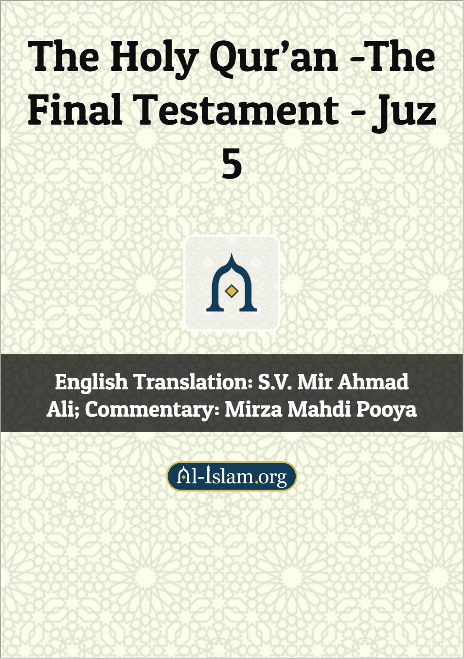 This text is the fifth volume of the translation and commentary of the Holy Qur’an by Mir Ahmad ‘‘Ali and Ayatullah Agha Hajj Mirza Mahdi Pooya Yazdi.