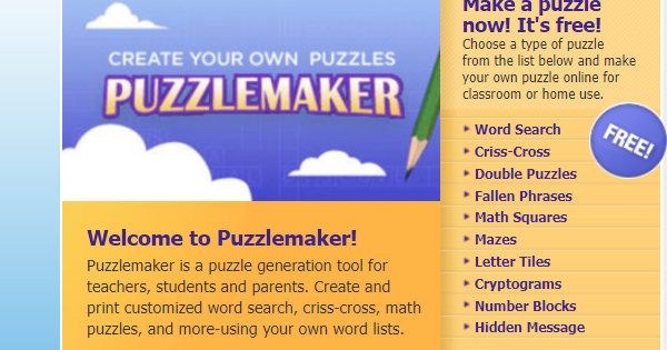 Discovery Education's Puzzlemaker provides teachers, students, and parents, the tools necessary to create crossword, puzzles, word search puzzles, mazes and more online!