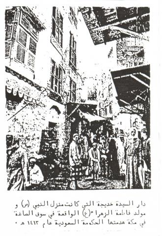 In that house Fatima (ع) was born and the revelation descended upon the Messenger of Allah (ص) many times. This house, as well as the one in which the Prophet of Islam (ص) was born (which stood approximately 50 meters northwards), were both demolished by the ignorant and fanatical Wahhabi rulers of Saudi Arabia in 1413 A.H./1993 A.D.... The grave sites of many family members and companions of the Holy Prophet (ص) were all demolished by the same Wahhabis in 1343 A.H./1924 A.D. against the wish and despite the denunciation of the adherents of all other Muslim sects and schools of thought world-wide.